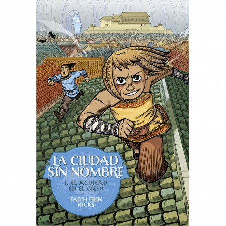 La nueva capital de los daos está estratégicamente ubicada: atravesada por el Río de las vidas, es el único acceso al mar de toda la región. Las naciones de la zona se disputan con frecuencia este lugar tan valioso y cada vez que cambia de mano, le dan un nuevo nombre. Con el paso del tiempo, la ciudad ha perdido su identidad y para los nativos este lugar es La Ciudad Sin Nombre. Muy ajeno a los temas políticos, el joven Kaidu, hijo de un general dao, deja su pueblo para llegar al palacio y formarse como guerrero de la nación. Una oportunidad para conocer a su padre, que nunca antes ha visto. Averiguará que, como él, Kaidu es distinto del resto de los daos. Descubre rápidamente que la ciudad y su historia le interesan mucho más que saber manejar la espada. Cuando conoce a Rata, una joven lugareña huérfana y escurridiza, siente una curiosidad que lo llevará hacia derroteros insospechados. El agujero en el cielo es el primer tomo de una trilogía que ha vendido más de 150.000 ejemplares en EE.UU. y se ha visto incluida en listas de referencia como School Library Journal, Kirkus y la selección de los mejores libros para niños de la biblioteca de Nueva York. La lucha de clases, el doble filo del poder y el sentido de la política son temas centrales en la intriga de este trepidante relato, alabado por autores como Jeff Smith, el creador de Bone. Faith Erin Hicks, su creadora se llevó uno de sus dos Eisner a mejor cómic para niños (9-12 años) por el tomo final de la trilogía. Por suerte, no habrá que esperar demasiado para seguir descubriendo la trama de esta aventura política y social, ya que la segunda entrega en castellano está prevista para finales de 2023.