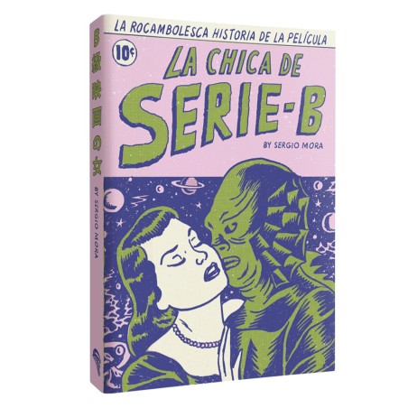 Sergio Mora acostumbra a combinar estilos, géneros, mezclando cultura pop estadounidense lo sobrenatural con lo mundano, la magia, lo terrenal, el cine, los tebeos, la historia y el humor y la «La rocambolesca historia de la película La Chica de Serie B» no iba a ser una excepción. En esta ocasión, Sergio Mora cruza dos tramas. Por un lado el rodaje de una película sobre Milicent Patrick, la creadora del monstruo clásico de Universal, la Criatura de la Laguna, cuya autoría fue ocultada y su figura relegada al ostracismo durante décadas. Y por otro, las peripecias del director de dicha cinta, Simón Sagal, su tensa relación de pareja, el tortuoso camino a la fama, conspiraciones, haters, managers farloperos, hechizos, conjuros y sucesos varios que hacen de esta combinación un relato de humor tronchante de primer orden. Por si fuera poco, en esta mezcla explosiva, conviven cómic y novela, un tebeo con mucha letra, un ping pong de narrativa y viñetas, un poco como aquellos libros de Bruguera de los 60, que llevaban en la página impar un cómic que completaba la narrativa del texto a su izquierda. Este descacharrante relato se remata con una potencia estética de primer orden, el inconfundible estilo de Sergio Mora, aka Mágico Mora, iluminado con 4 tintas directas como 4 besetes en las pupilas.