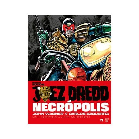 JUEZ DREDD EN LA CIUDAD DE LOS MUERTOS! Recientemente, la fe del Juez Dredd en el sistema se ha tambaleado. El regreso del cadete Kraken, un joven clon creado a partir de la misma cepa genética que Dredd y que había intentado destruir Mega-City Uno en el pasado, es la gota que colma el vaso y el Juez Dredd decide emprender la Larga Marcha a la Tierra Maldita. Su ausencia deja desprotegida la ciudad ante el regreso de los Jueces Oscuros, acompañados esta vez de las Hermanas de Muerte: Fobia y Náusea. El resultado, Mega-City Uno es convertida en una gran Necrópolis con millones de muertos en sus calles. John Wanger (Perro de Estroncio) y Carlos Ezquerra (Rat Pack, Major Eazy) presentan uno de los blockbusters más recordados de la revista 2000 AD. Publicada a principios de los noventa e inédita en España hasta la fecha, Necrópolis se cuenta entre las sagas más importantes y ambiciosas de la historia del Juez Dredd. Además, en este volumen se incluye Cuento del Hombre Muerto, el prólogo a Necrópolis también inédito en nuestro país. "Es complicado que una historia leída con cierta edad llegue al selecto podio de tus favoritas, normalmente ocupado de manera inamovible por las descubiertas de niño o adolescente, ¿verdad? Pues Necrópolis, que cayó en mis manos ya pasados los cuarenta, tiene un sitio bien alto asegurado en esa cúspide de las protagonizadas por Dredd que más disfrute me han dado". Sergio Aguirre (Sala de Peligro)