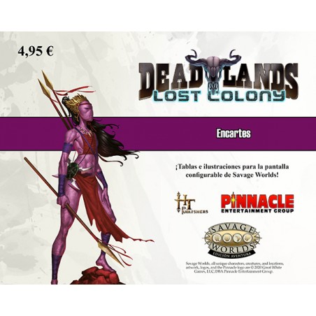 Encartes de 280×224 mm diseñados para que puedas utilizarlos sin problemas con la Savage Worlds Customizable Game Master’s Screen de Pinnacle o la Pantalla del Director de Juego personalizable () creada por Tesoros de la Marca, que podrás encontrar en cualquier tienda especializada. Se trata de una pantalla en vinilo, plegable y de tres cuerpos, fácil y rápida de usar en cualquier ambientación, pues solo es necesario cambiar los encartes del lado del Director de Juego o del jugador.