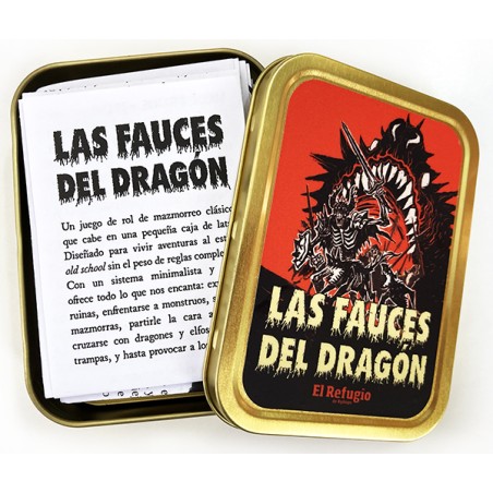 Un juego de mazmorreo clásico que cabe en una pequeña caja de lata. Veteranos y novatos, entrad en Las fauces del dragón y luchad por salir de ellas con vida ¡y con oro!