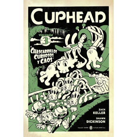 ¡No pierdas la oportunidad de encontrarte con Cuphead, Mugman y Ms. Chalice en el tercer volumen de sus cómics, realizados de nuevo por el equipo formado por el guionista Zack Keller y el dibujante Shawn Dickinson!