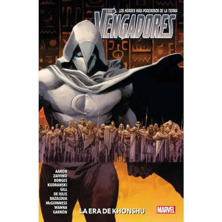 ¡La última tentación de Tony Stark! Atrapado en el amanecer de los tiempos, Tony ha perdido su armadura y buena parte de su mente. Esta noche puede que pierda lo que queda de su alma. Mientras, en el presente, las momias se levantan de sus tumbas, un dios oscuro ha invadido Asgard y el Caballero Luna está desatado. Ha llegado la Era de Khonshu. ¡Ha llegado la caída de Los Vengadores!