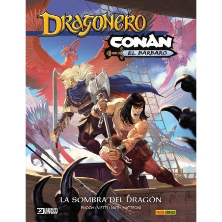 Era inevitable que Conan el Bárbaro y Dragonero, dos iconos del cómic fantástico, se encontraran algún día, o mejor aún, cruzaran sus espadas. De Erondár al continente hyborio, descubre el increíble viaje del cimmerio y de Ian Aranill, tras la pista de un terrible dragón y de las gemas que ha robado... Una saga trepidante escrita por Luca Enoch (Lilith) y Stefano Vietti (Dragonero: Sinalma) y dibujada por Lorenzo Nuti (Les Bêtes de Black City). Las historias de los orígenes de Dragonero están ilustradas por Giuseppe Matteoni (Nyx).